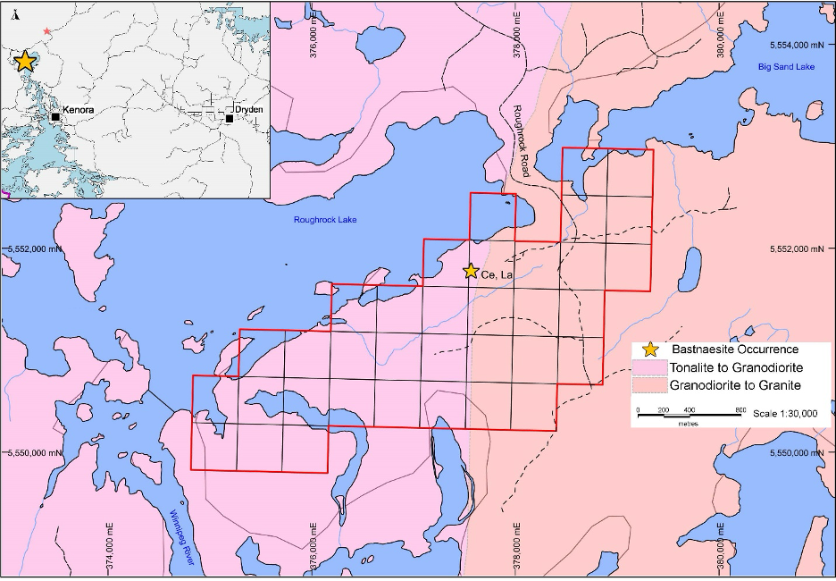 100% owned 720 hectare Rare Earth project with bastnaesite and allanite occurrences.